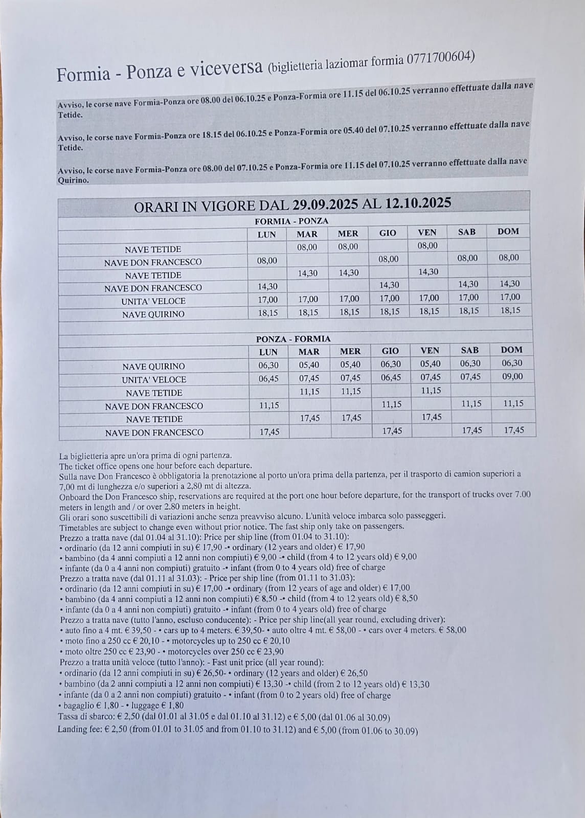 Collegamenti Isole Pontine - FINO AL 31 DICEMBRE 2025