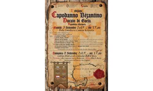 “L’evento di quest’anno, settembre 2019, creato e organizzato dal ‘Comitato Organizzativo Capodanno Bizantino – Ducato di Gaeta’ in collaborazione con l’associazione culturale ‘Gaeta e il Mare’ e patrocinato dall’Arcidiocesi di Gaeta, il Comune di Gaeta, prevede due momenti susseguenti l’uno all’altro destinati: il primo, ad illustrare la storia, l’arte, la politica e l’economia dell’antico Ducato (che comprendeva i comuni rivieraschi intorno a Gaeta, oltreché la stessa Gaeta ed alcuni territori contigui della Ciociaria, comprensorio territoriale che oggi ancora rientra nella giurisdizione dell’Arcidiocesi di Gaeta) e che consiste nel convegno presso la sala consiliare del Comune di Gaeta il giorno 3 settembre 2019 alle ore 17”.