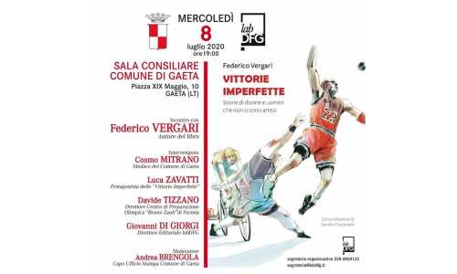 Mercoledì 8 luglio alle ore 19 presso la Sala Consiliare del Comune di Gaeta si terrà la prima presentazione del libro Vittorie imperfette di Federico Vergari, edito dalla casa editrice labDFG. Oltre all’autore e al Direttore editoriale Giovanni Di Giorgi interverranno il Sindaco di Gaeta Cosmo Mitrano, Luca Zavatti uno dei protagonisti del libro e Davide Tizzano direttore del centro di preparazione olimpica Bruno Zauli di Formia.