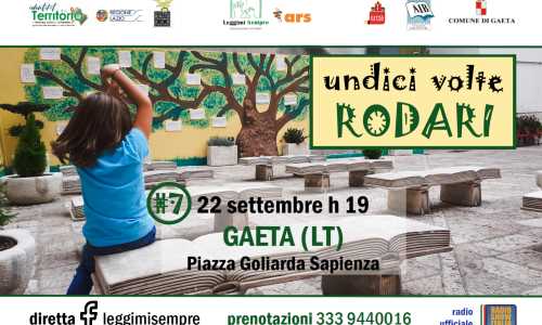 “Undici volte Rodari”, prima di Gaeta,ha fatto sosta a Monte San Biagio (25 luglio), Lenola (12 agosto), Campodimele (20 agosto), Fondi (28 agosto), Terracina (10 settembre) e Castelforte (16 settembre). Le iniziative negli altri Comuni verranno annunciate nei prossimi giorni.