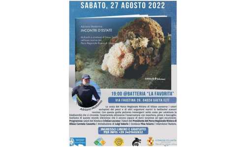 Sabato 27 agosto, alle ore 19, sulla terrazza della batteria La Favorita, a Gaeta Medioevale, avrà luogo la presentazione dell’ultimo libro del biologo marino Adriano Madonna, dal titolo “Incontri d’estate – Molluschi e crostacei di basso fondo nell’area marina del Parco Regionale Riviera di Ulisse”.