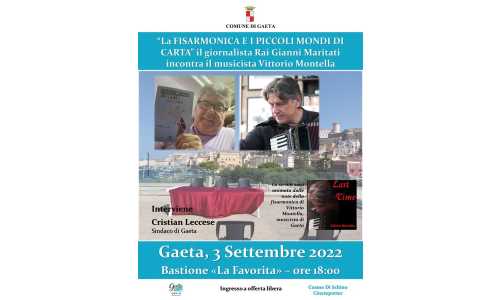 L'evento, a cura del giornalista Rai Gianni Maritati e del musicista Vittorio Montella, si terrร il 3 settembre p.v presso la Batteria โLa Favoritaโ. Lโevento inizierร alle ore 18,00 con la presentazione del libro โPiccoli mondi di cartaโ dellโautore Gianni Maritati, scritto durante il periodo di lockdown.